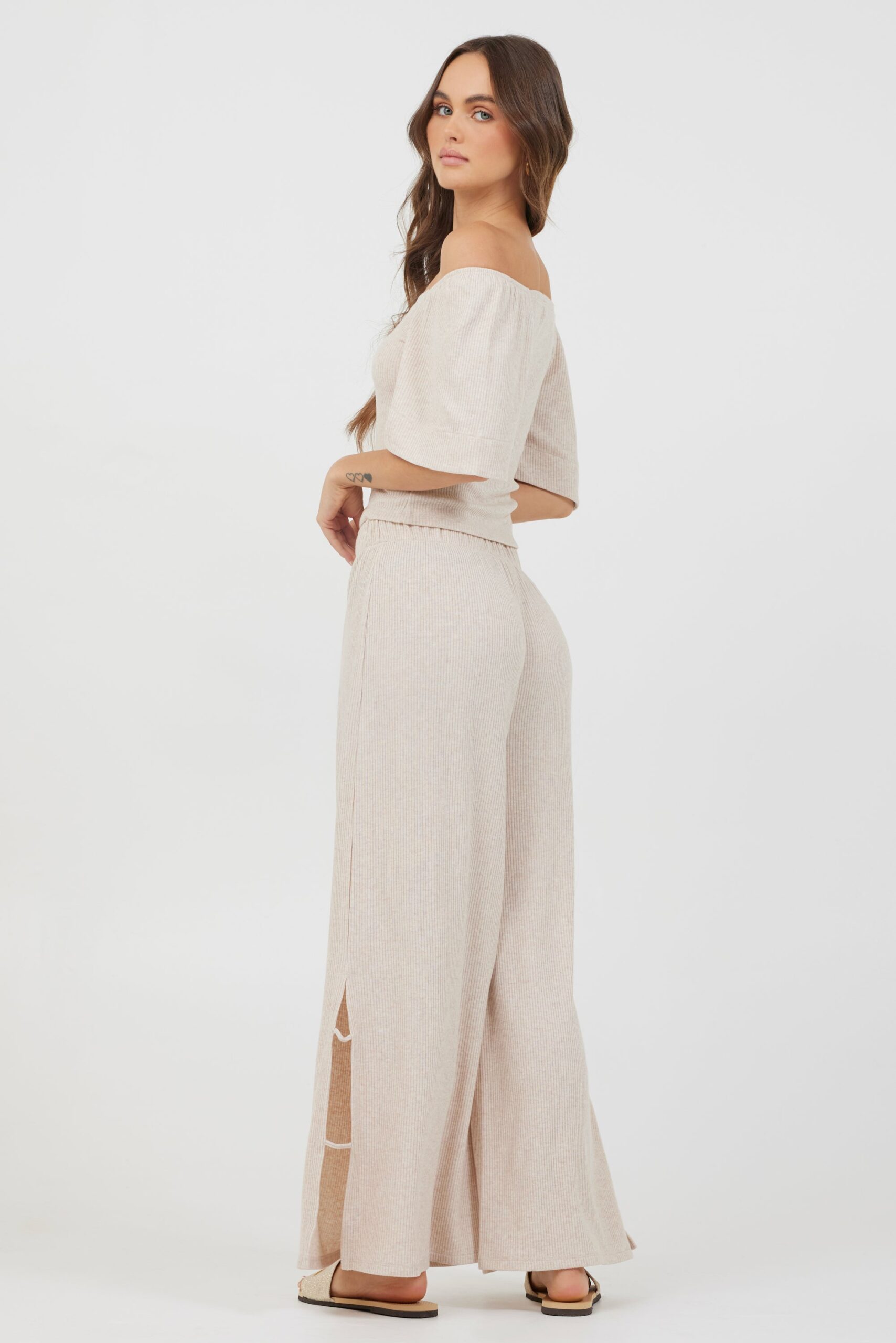 Heather Oatmeal Knit Top + Pants 2-Piece Set