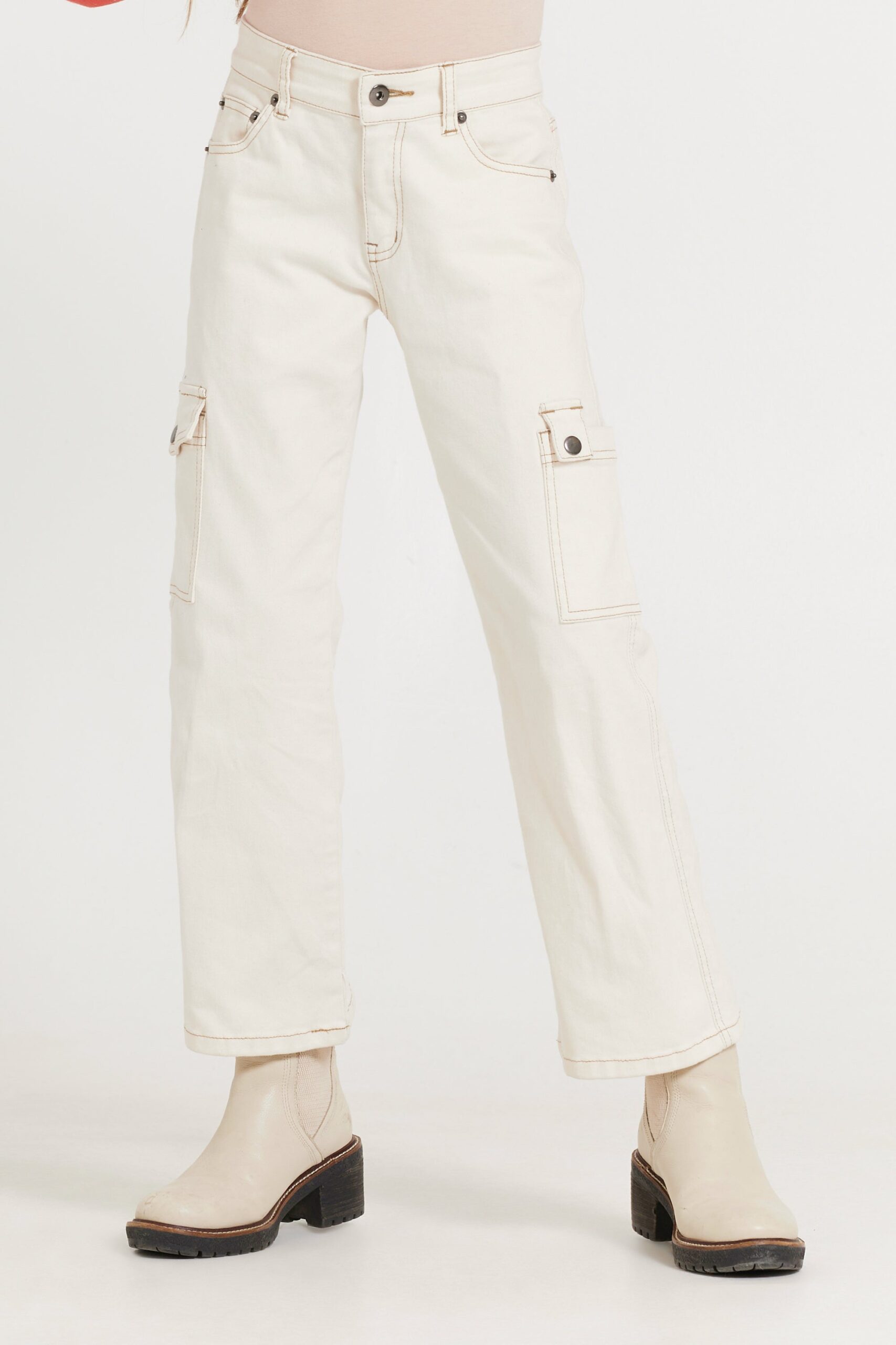 The Kids Cream Cargo Jean offers a comfortable and practical design with classic cargo pockets for easy storage. Crafted for durability and everyday wear, these jeans combine functionality with a clean, neutral cream color that pairs well with any outfit. Ideal for active kids, they provide both style and convenience in one versatile piece.