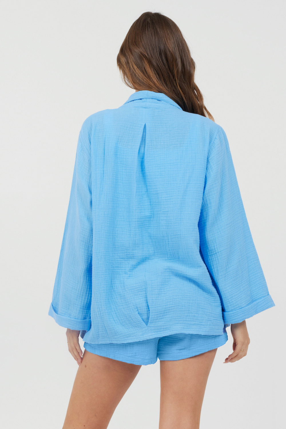 The Ocean Blue Washed Gauze Blazer features: