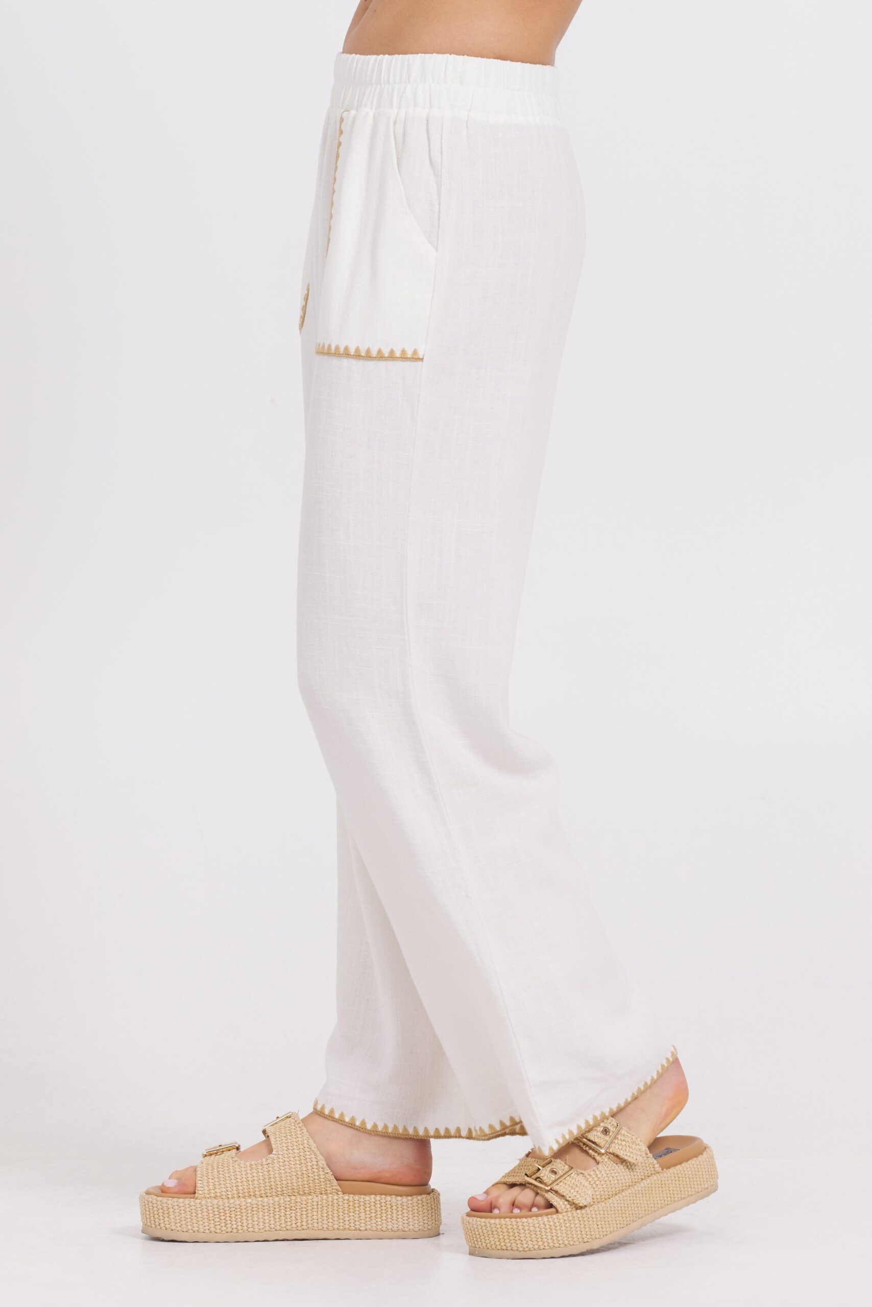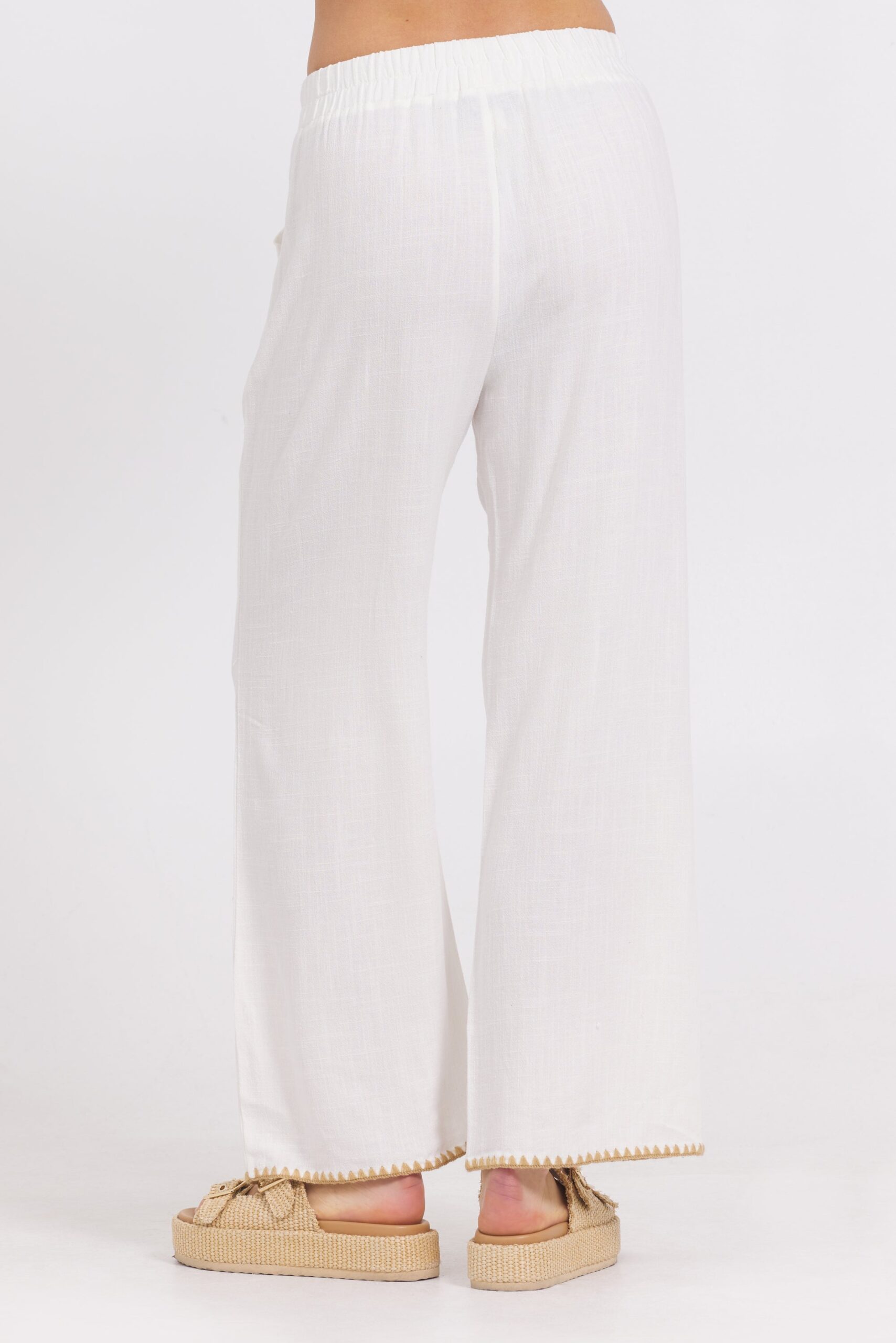 White Wide Leg Pant w/ Tan Whip Stitch